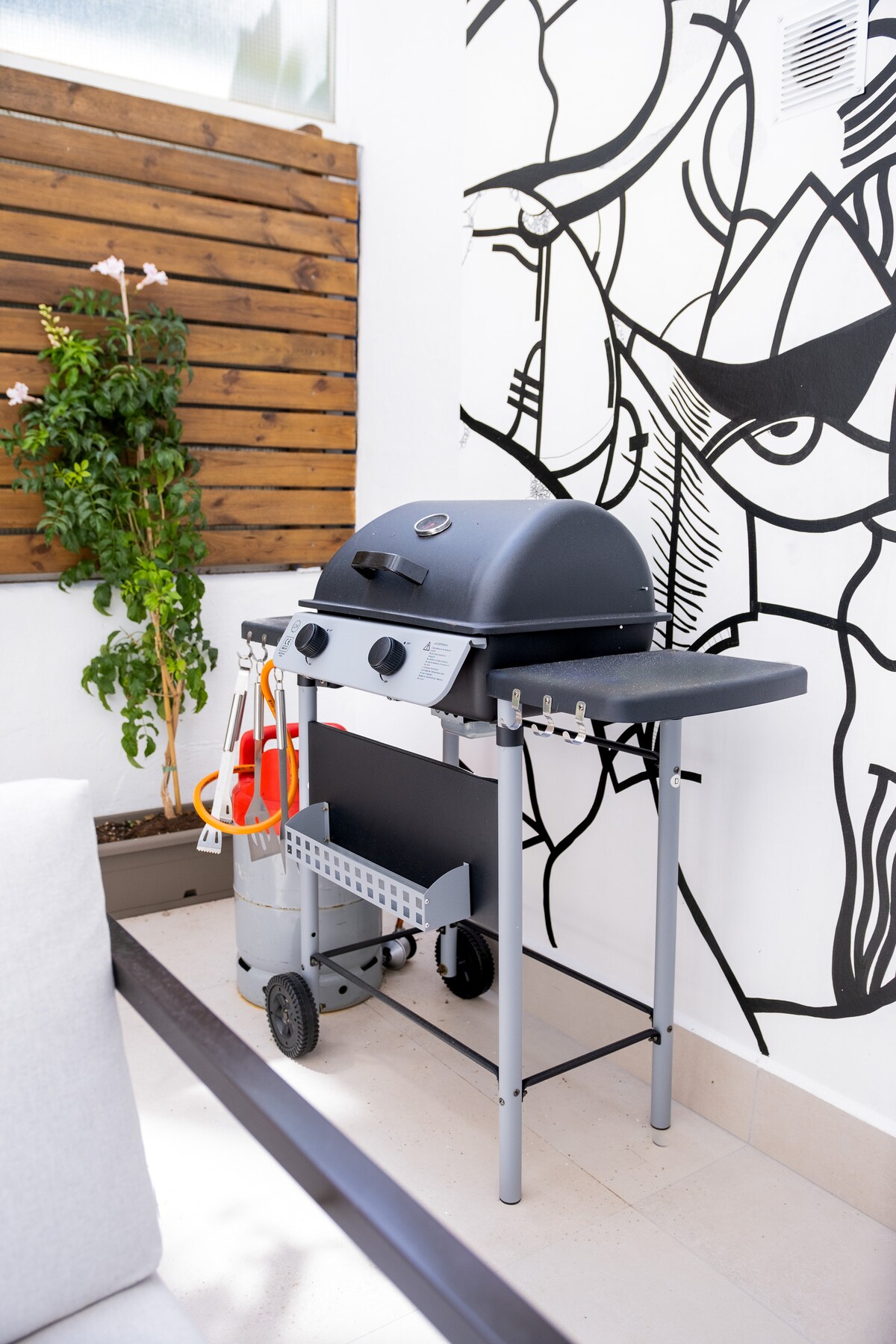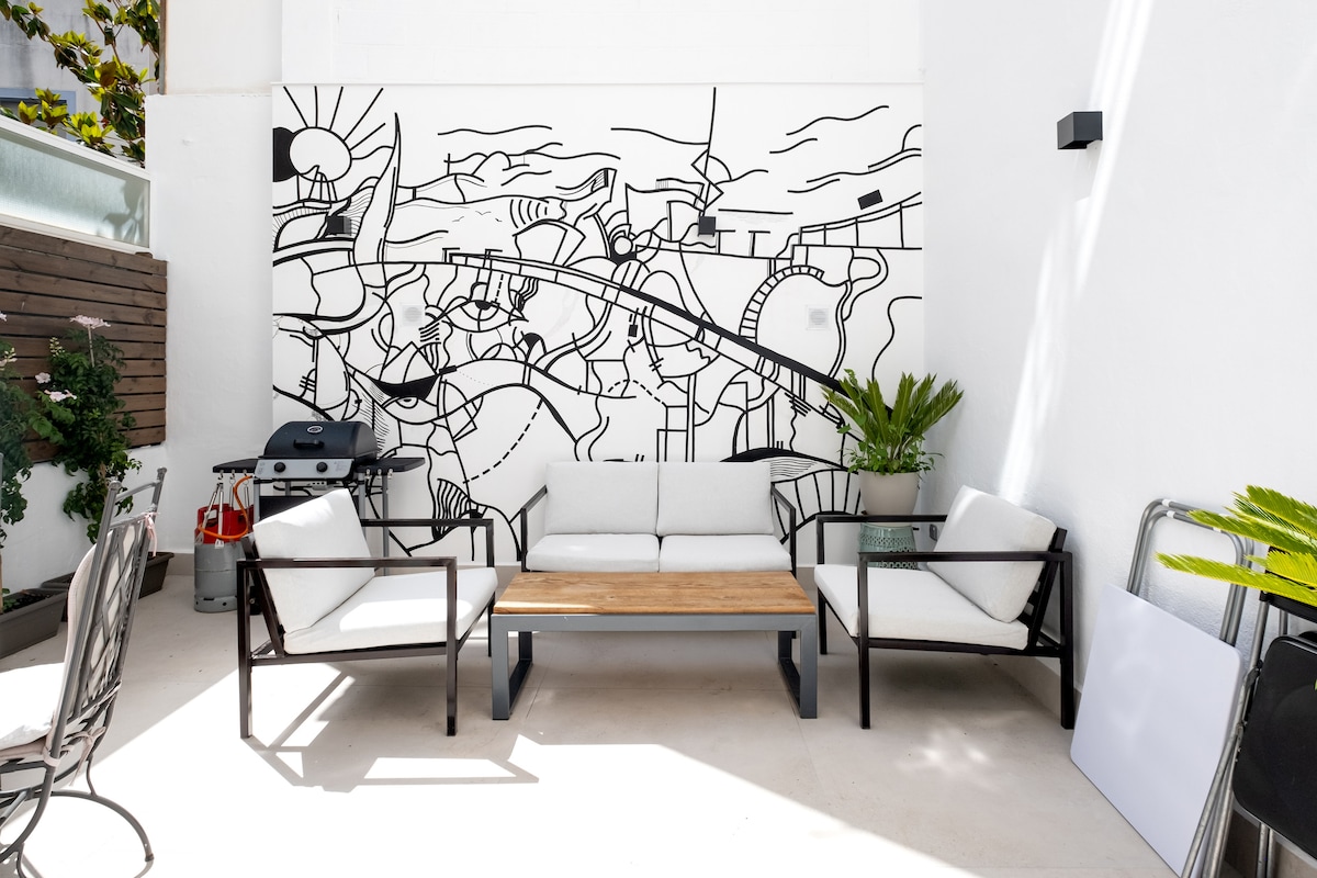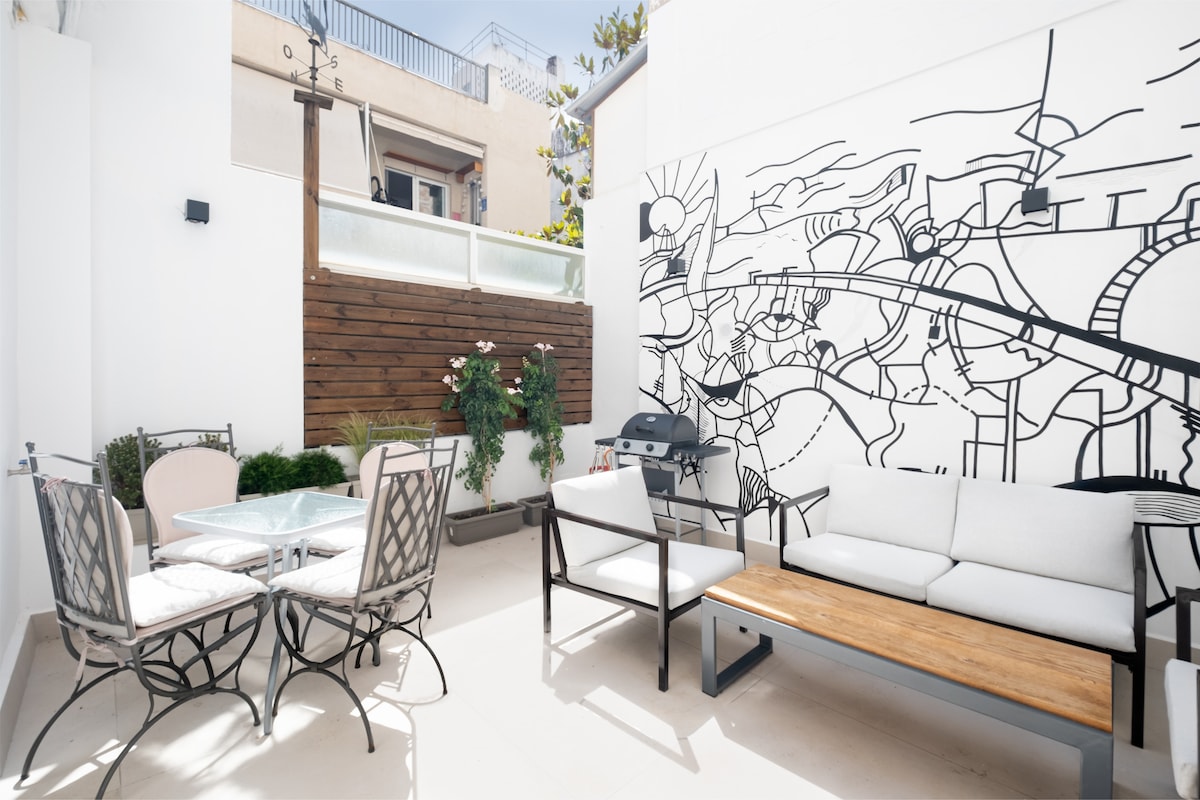 The first-floor apartment has a private terrace with custom art from a local graffiti artist. With top-quality renovations and super stylish decor, you'll find everything you need for a relaxing and memorable experience.