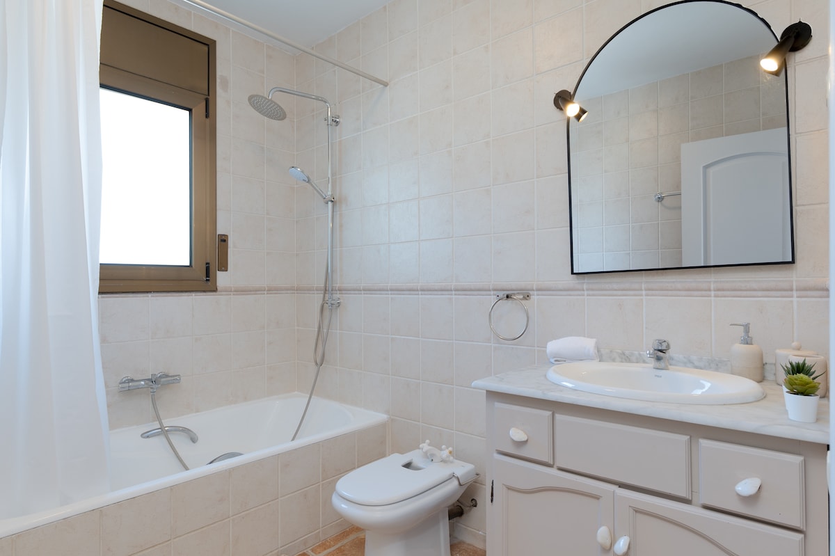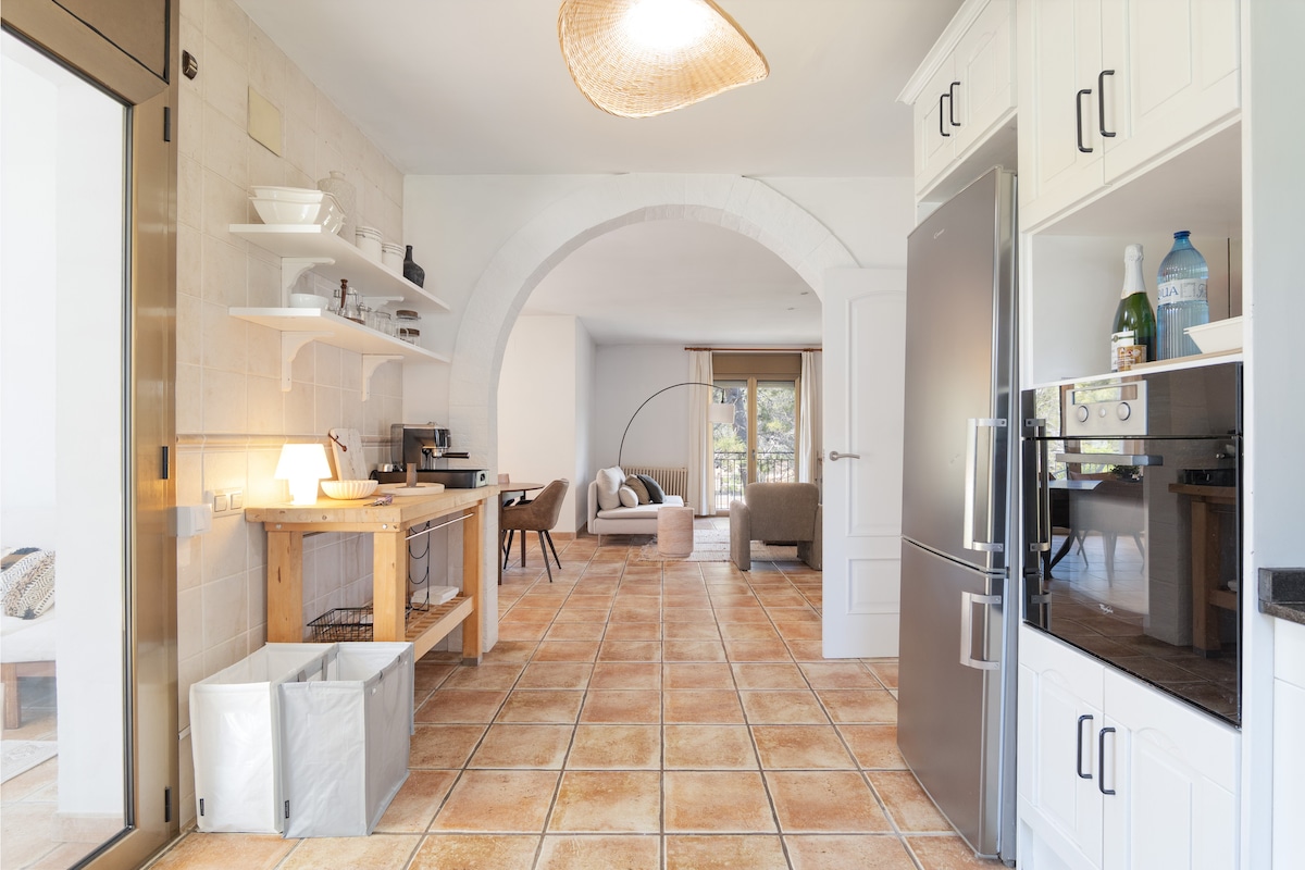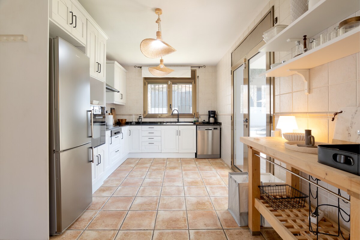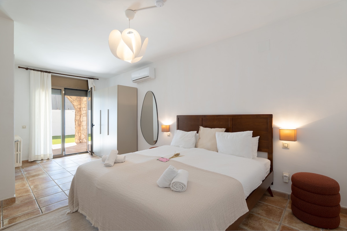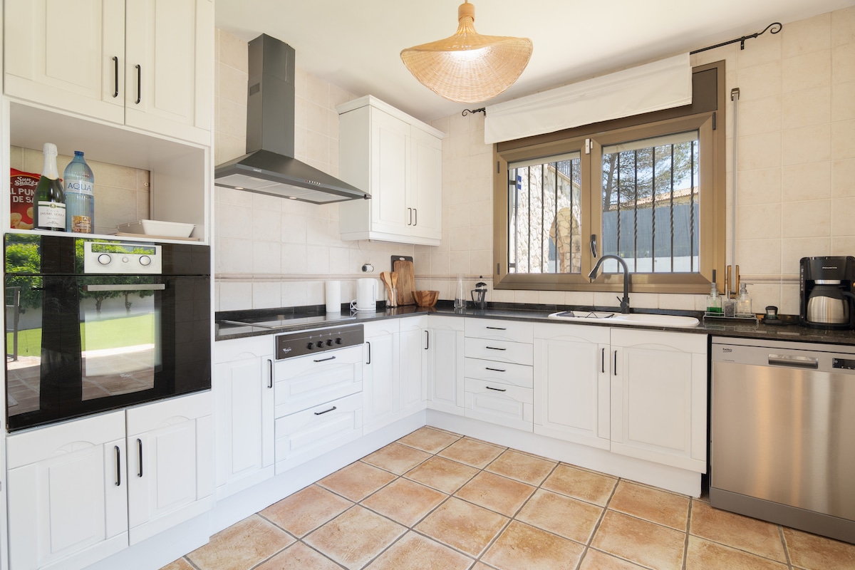 A Mediterranean interior, a fully equipped kitchen, and comfortable beds for a relaxing stay. Enjoy the huge pool, BBQ area and several lounge areas to soak up the sun.