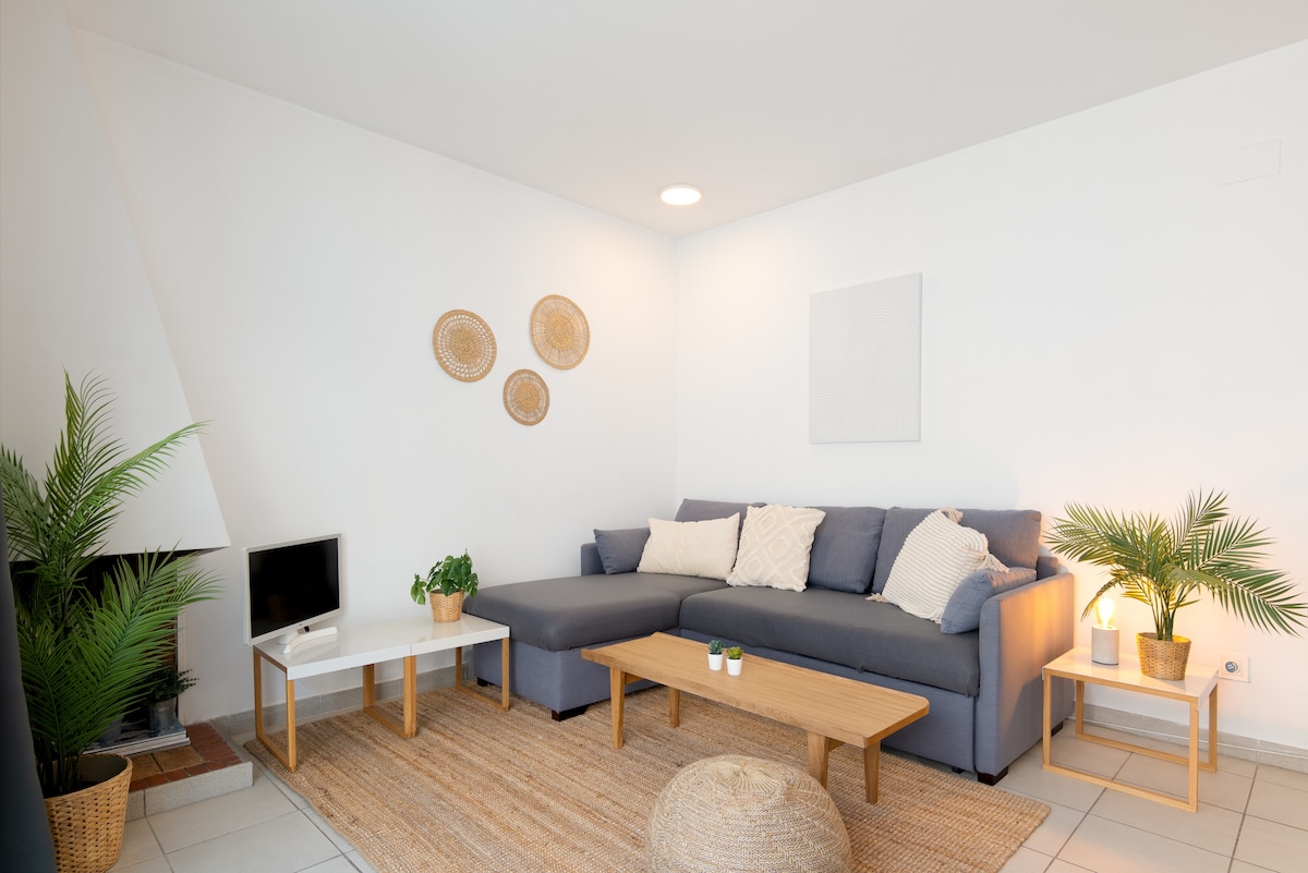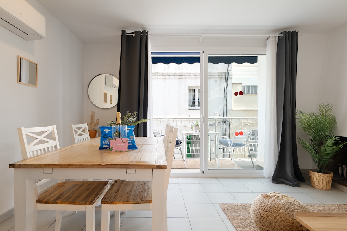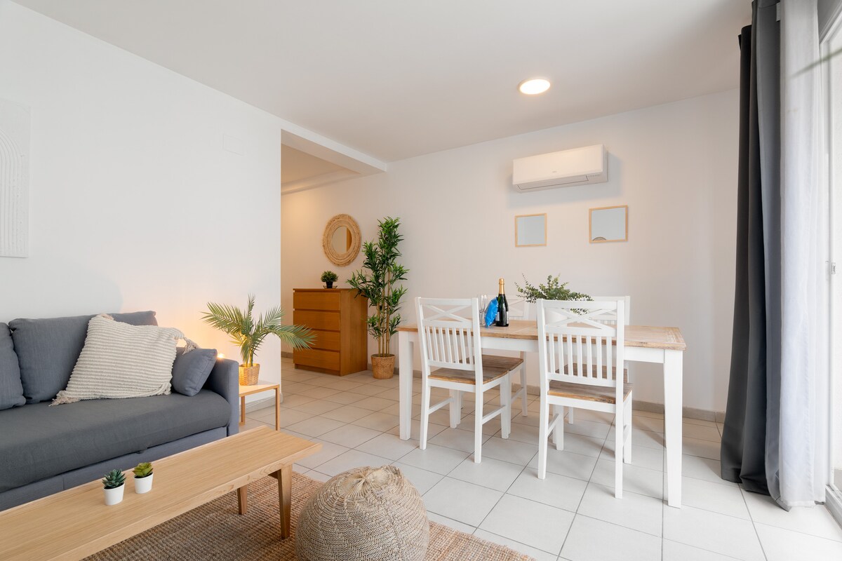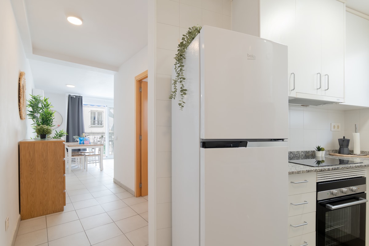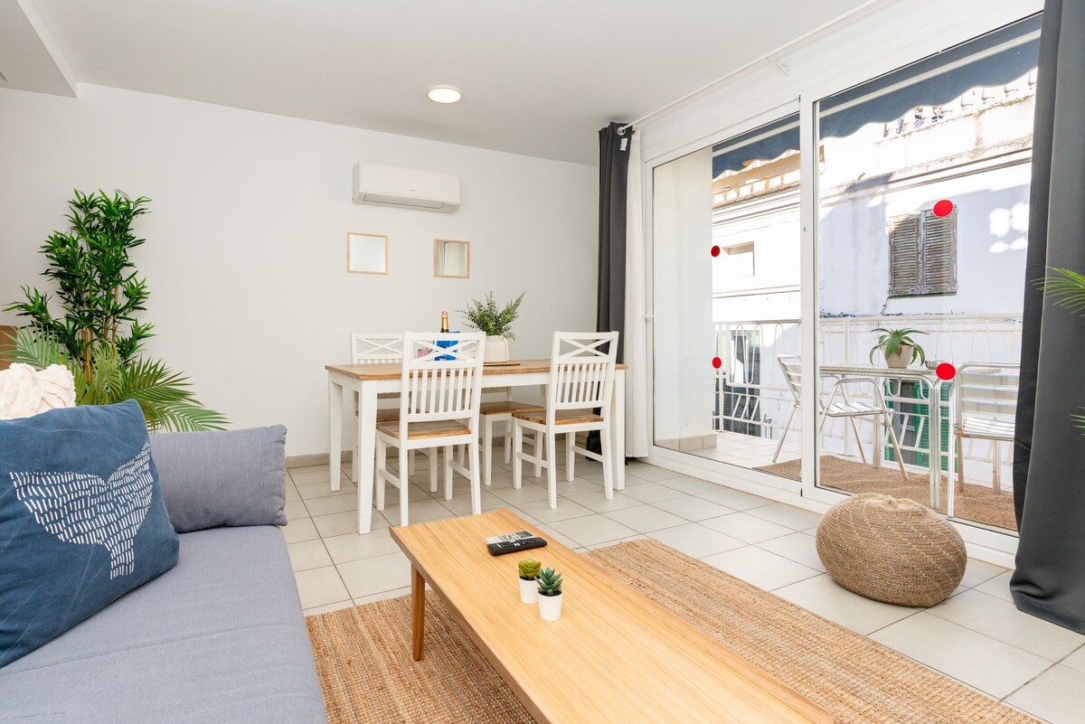 SitgesCozy one-bedroom apartment on a quiet street in the heart of Sitges, just 50 meters from the beach. Perfect for a couple, it offers a comfortable king-size bed, a stylish living area with a flatscreen TV, a dining space, and a modern kitchen equipped with a washing machine. Step out onto the balcony to enjoy the fresh sea breeze. Ideally located close to restaurants, shops, and the lively Sitges atmosphere, while providing a peaceful retreat for a relaxing stay.