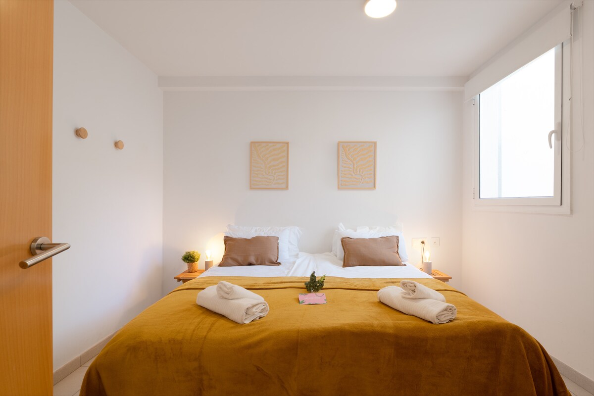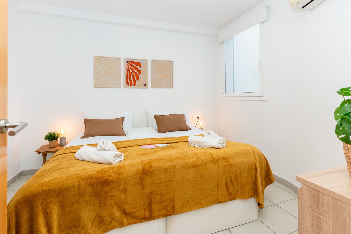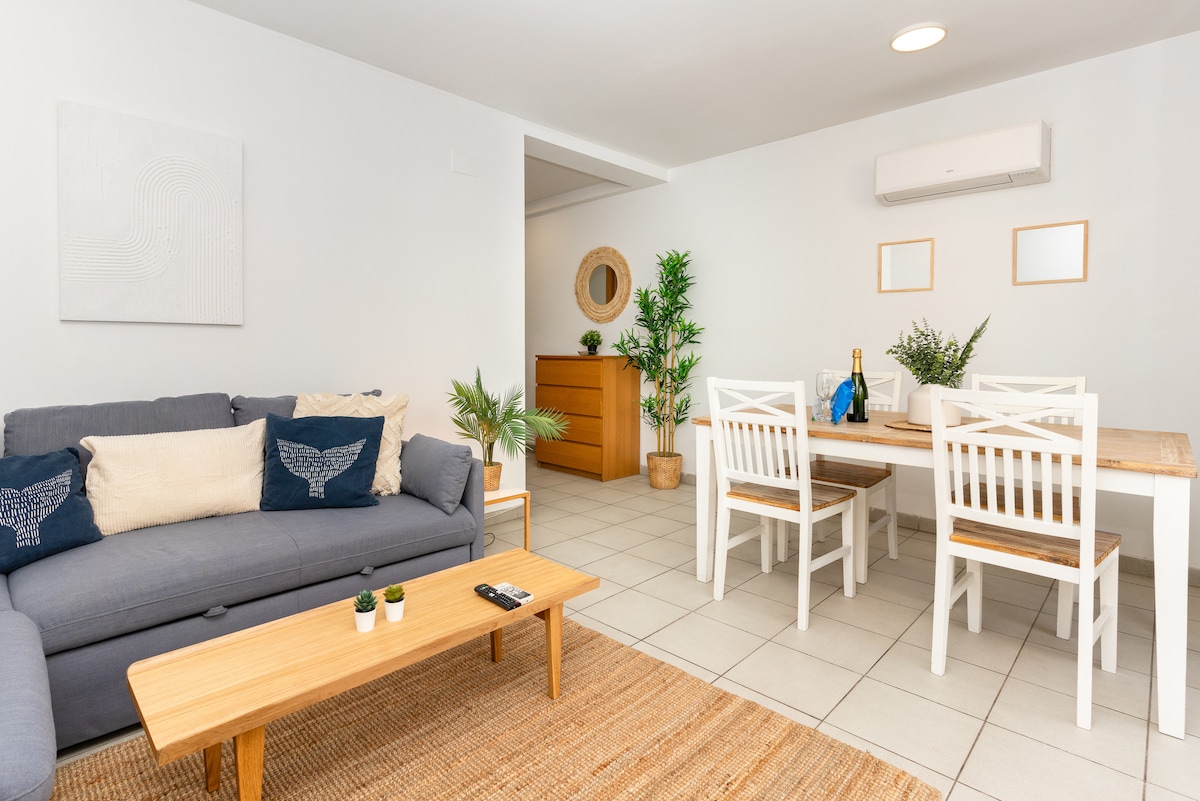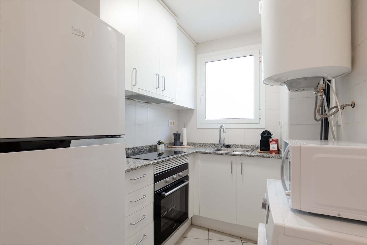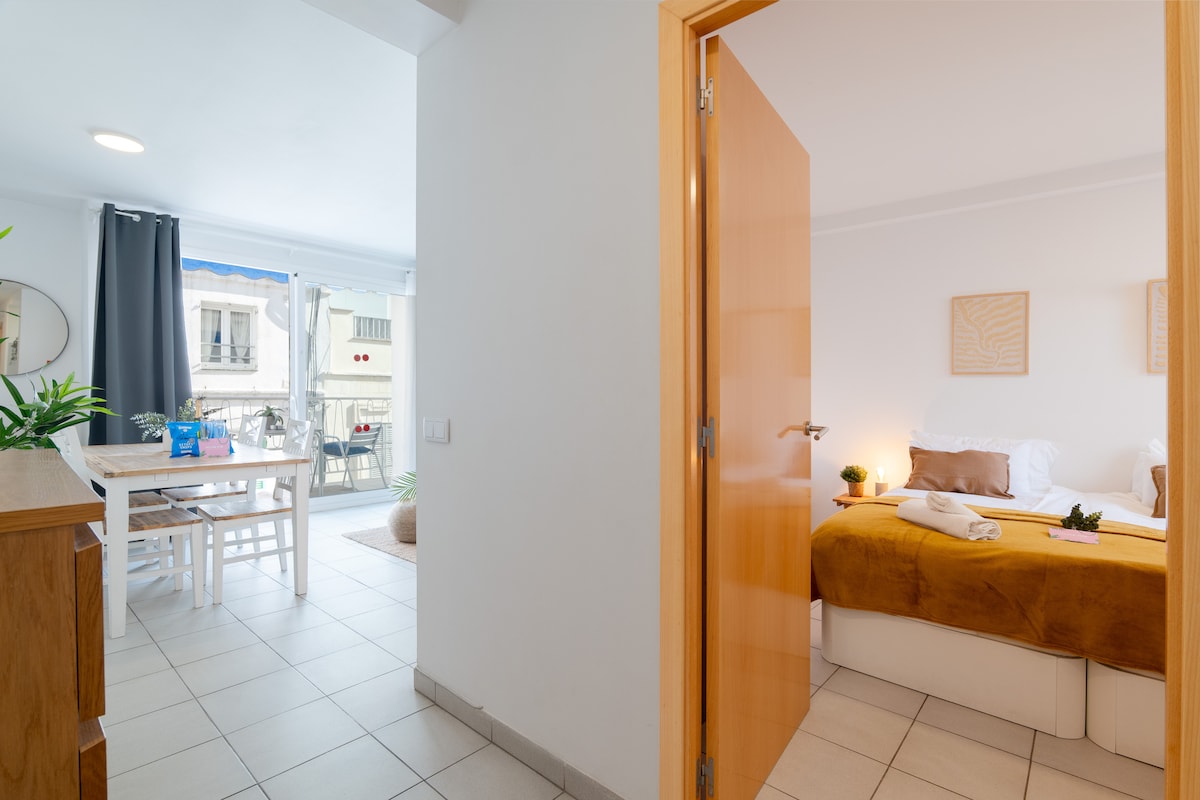 SitgesCozy one-bedroom apartment on a quiet street in the heart of Sitges, just 50 meters from the beach. Perfect for a couple, it offers a comfortable king-size bed, a stylish living area with a flatscreen TV, a dining space, and a modern kitchen equipped with a washing machine. Step out onto the balcony to enjoy the fresh sea breeze. Ideally located close to restaurants, shops, and the lively Sitges atmosphere, while providing a peaceful retreat for a relaxing stay.
