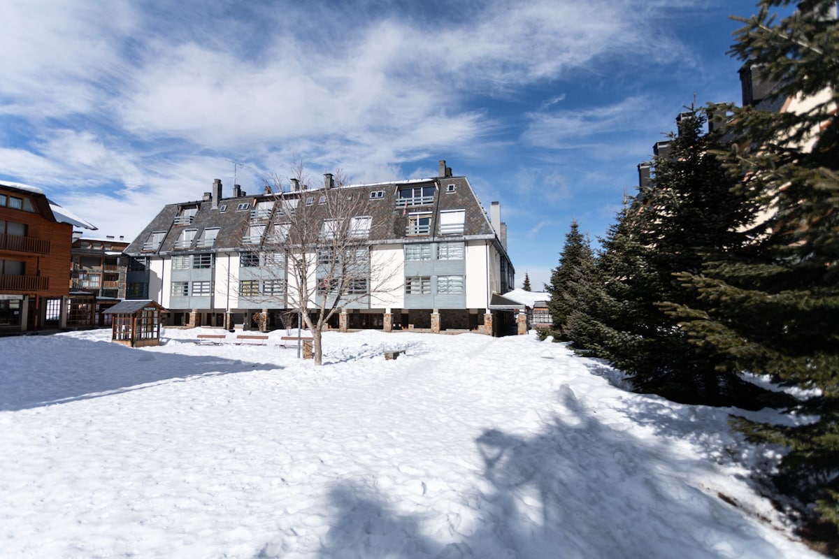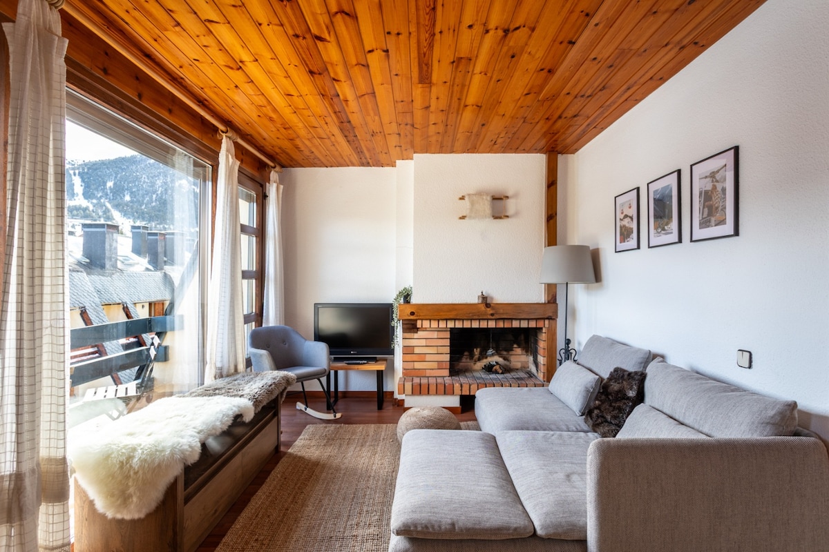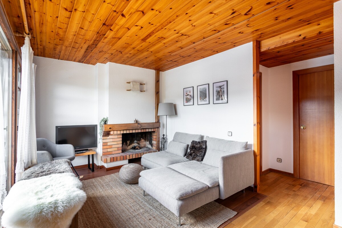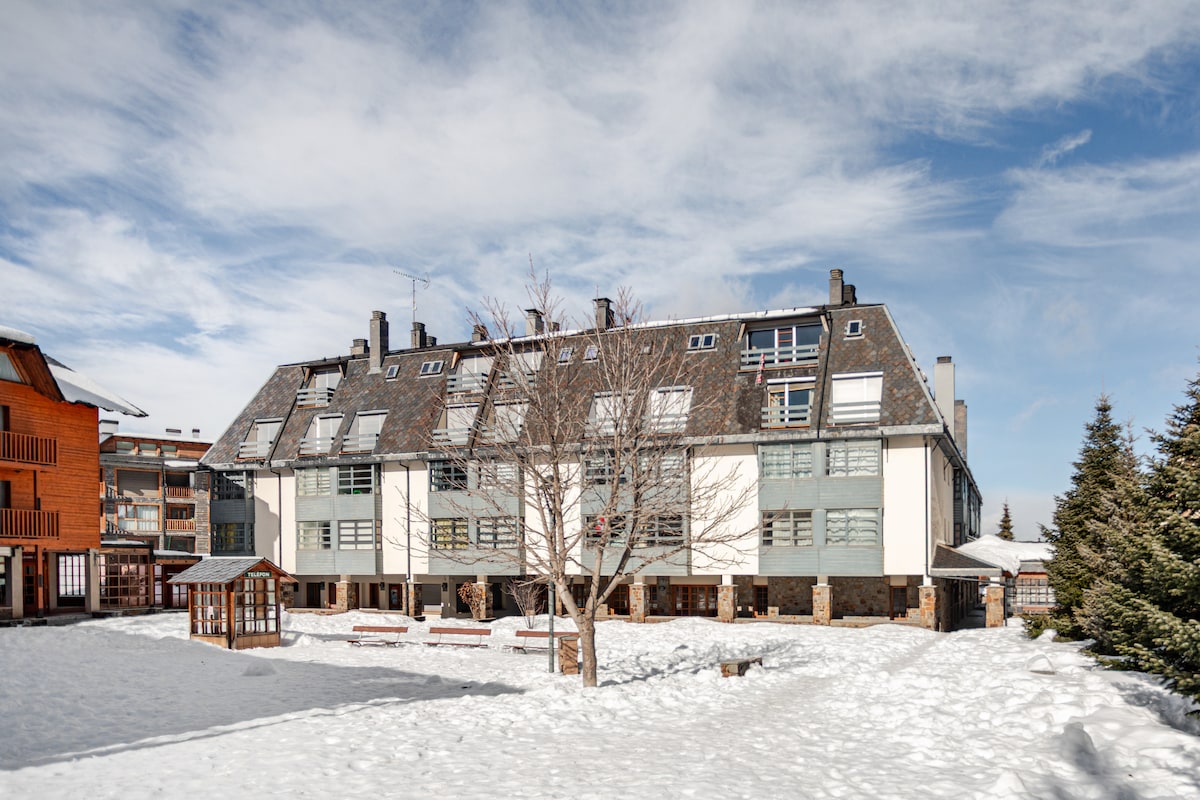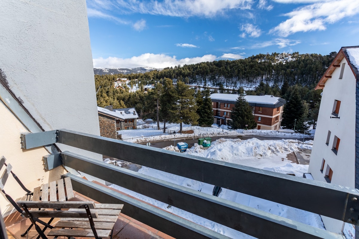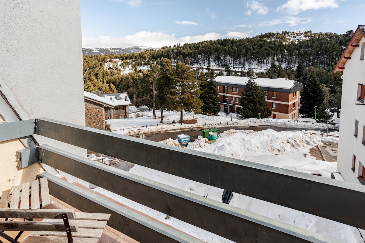 The spaceThe apartment is warm and comfortable, ideal for a mountain stay in La Molina. It has 3 bedrooms, one full bathroom, and a bright living area with an indoor fireplace. The kitchen is fully equipped and there is a washing machine, making it suitable for both short and longer stays. Guests can enjoy community WiFi and a private terrace with views of the mountains and ski slopes. The building also offers a dedicated ski storage area for guests. The apartment is located at the foot of the slopes, just a short walk to the ski lifts.