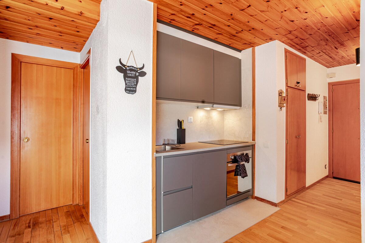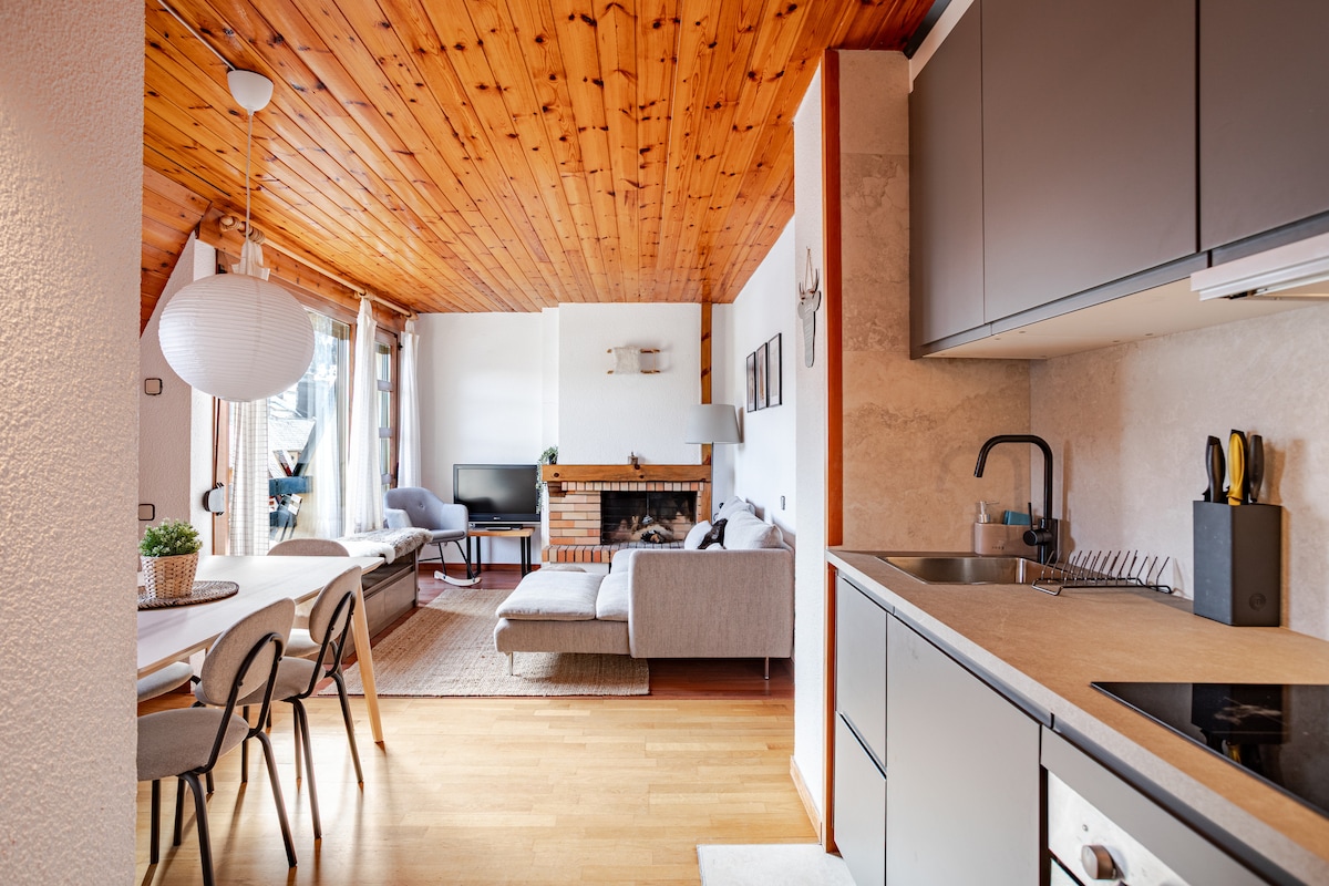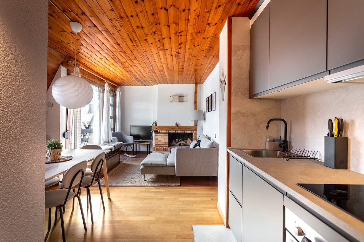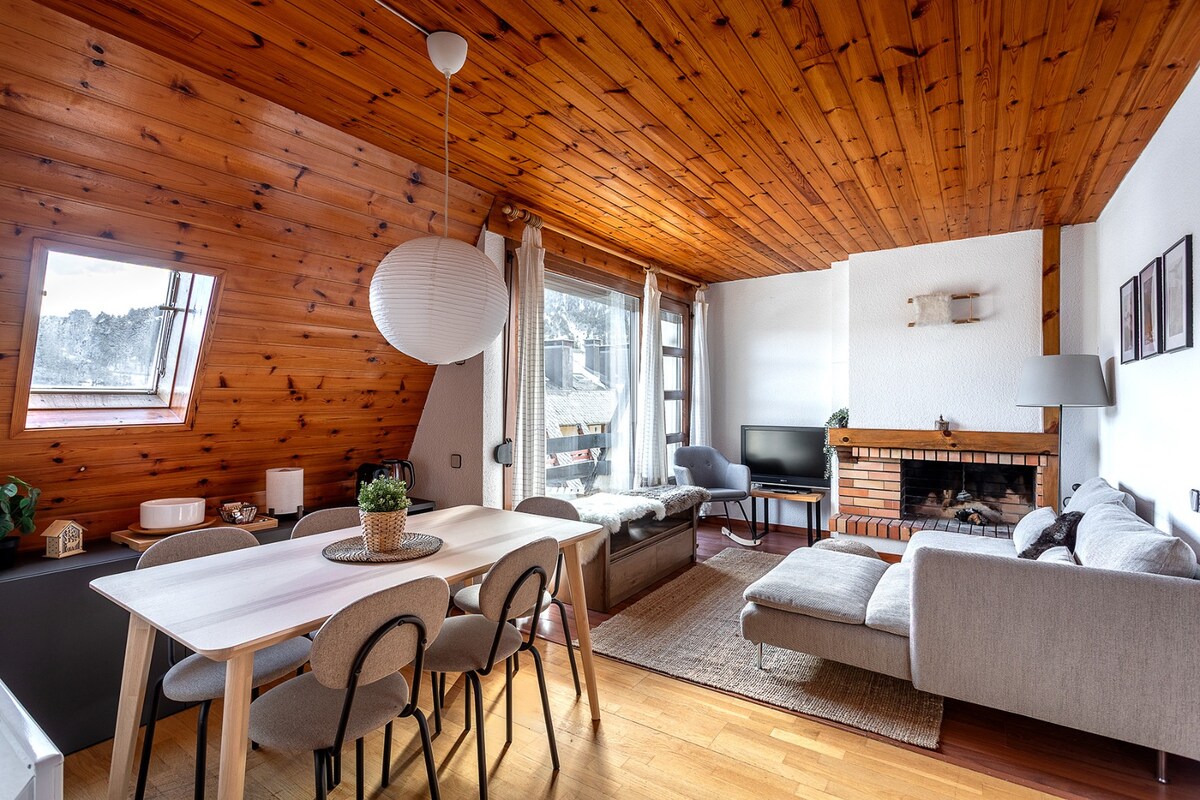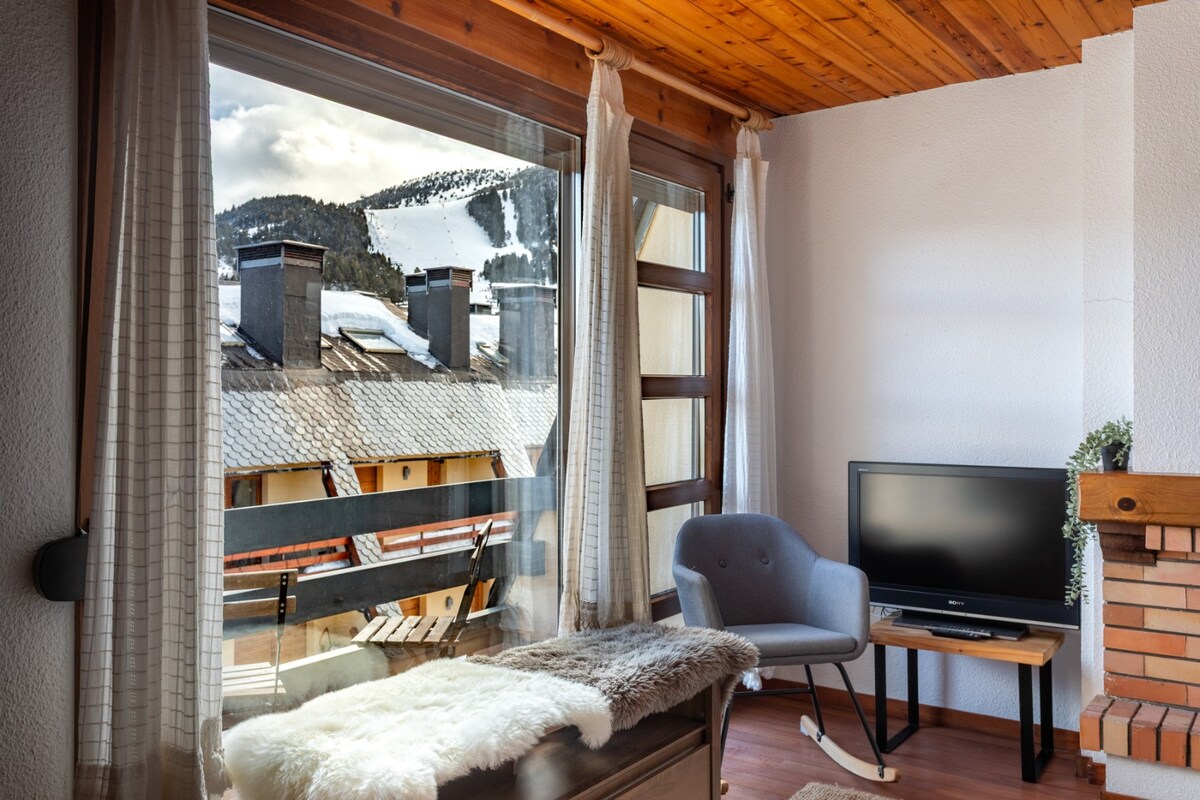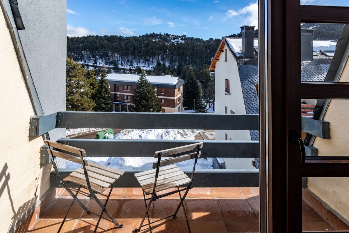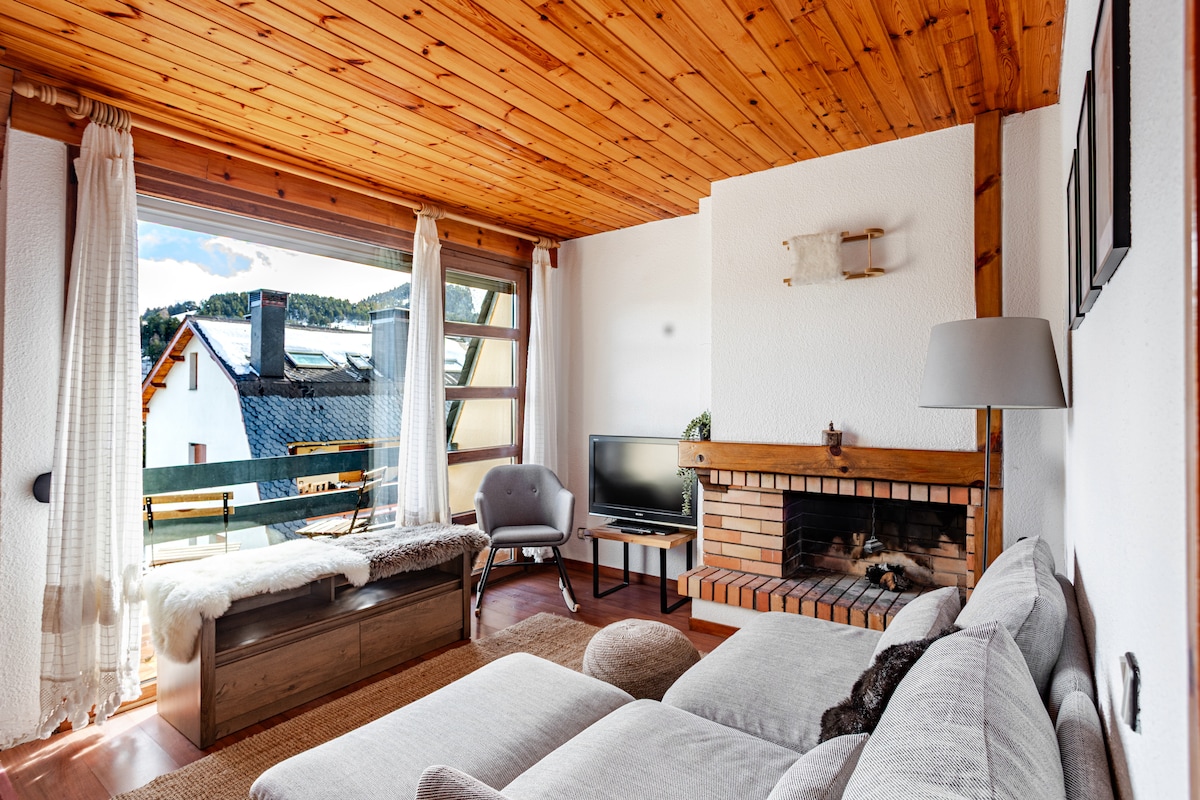 The spaceThe apartment is warm and comfortable, ideal for a mountain stay in La Molina. It has 3 bedrooms, one full bathroom, and a bright living area with an indoor fireplace. The kitchen is fully equipped and there is a washing machine, making it suitable for both short and longer stays. Guests can enjoy community WiFi and a private terrace with views of the mountains and ski slopes. The building also offers a dedicated ski storage area for guests. The apartment is located at the foot of the slopes, just a short walk to the ski lifts.