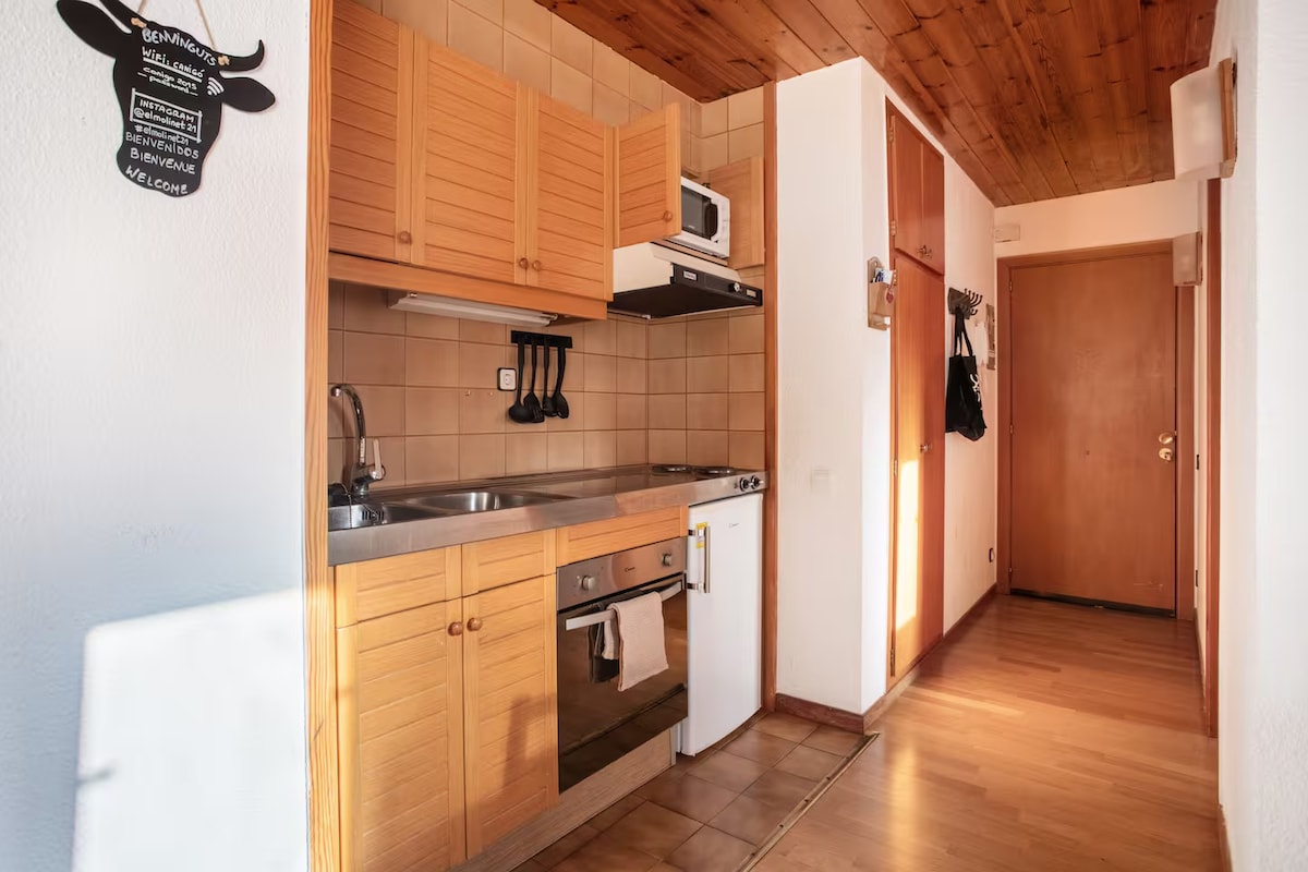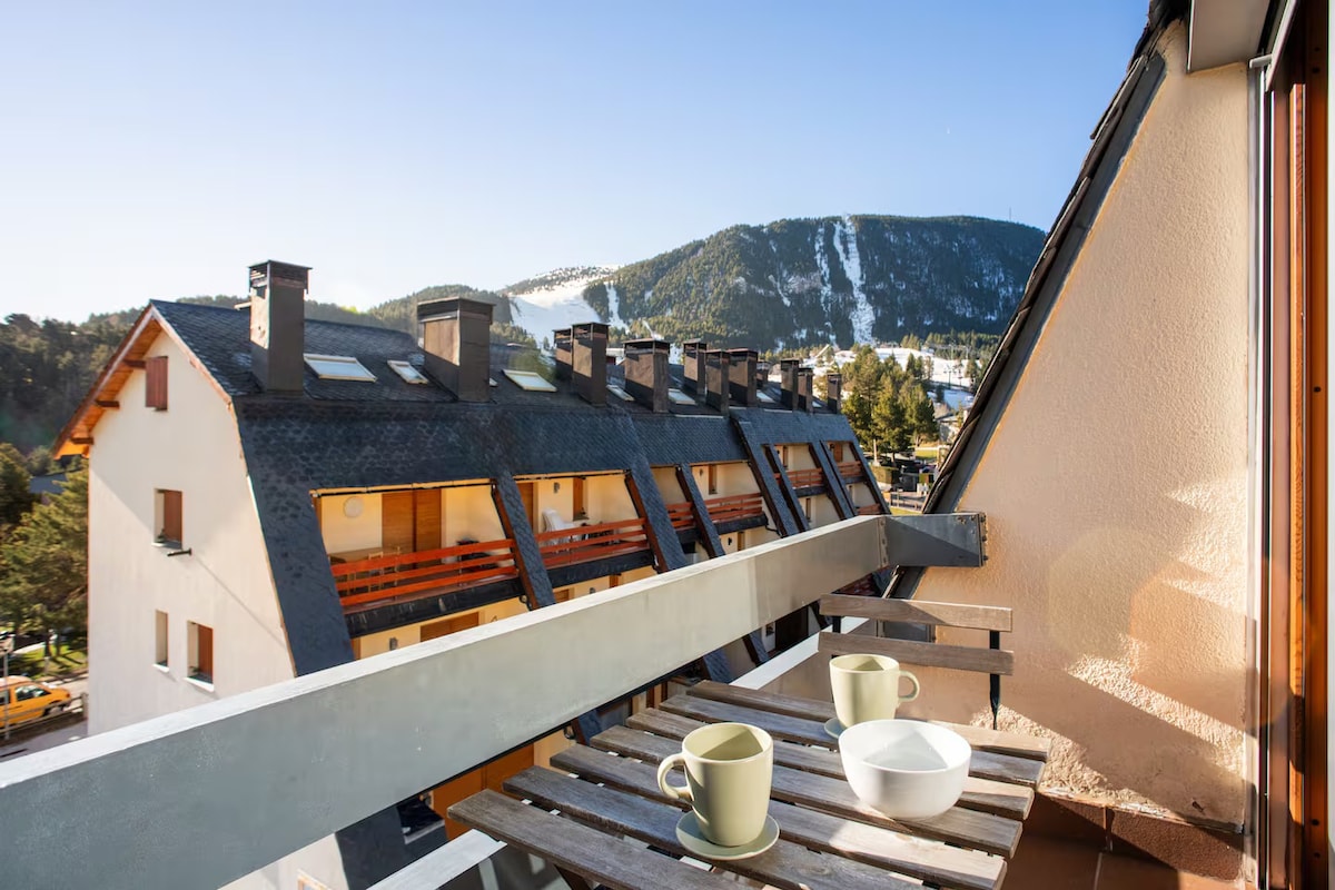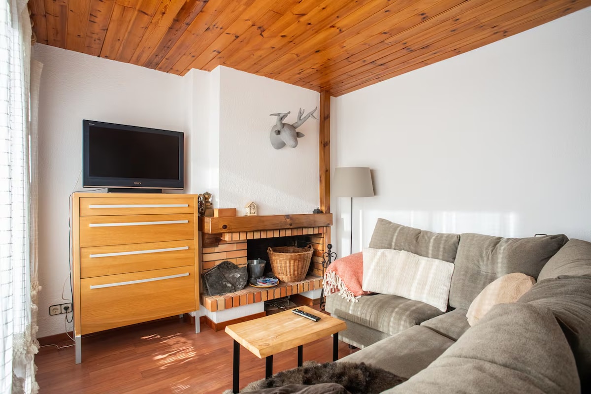 The spaceThe apartment is warm and comfortable, ideal for a mountain stay in La Molina. It features two double bedrooms, one full bathroom, and a bright living area with an indoor fireplace. The kitchen is fully equipped and there is a washing machine, making it suitable for both short and longer stays. Guests can enjoy community WiFi and a private terrace with views of the mountains and ski slopes. The building also offers a dedicated ski storage area for guests. The apartment is located at the foot of the slopes, just a short walk to the ski lifts.